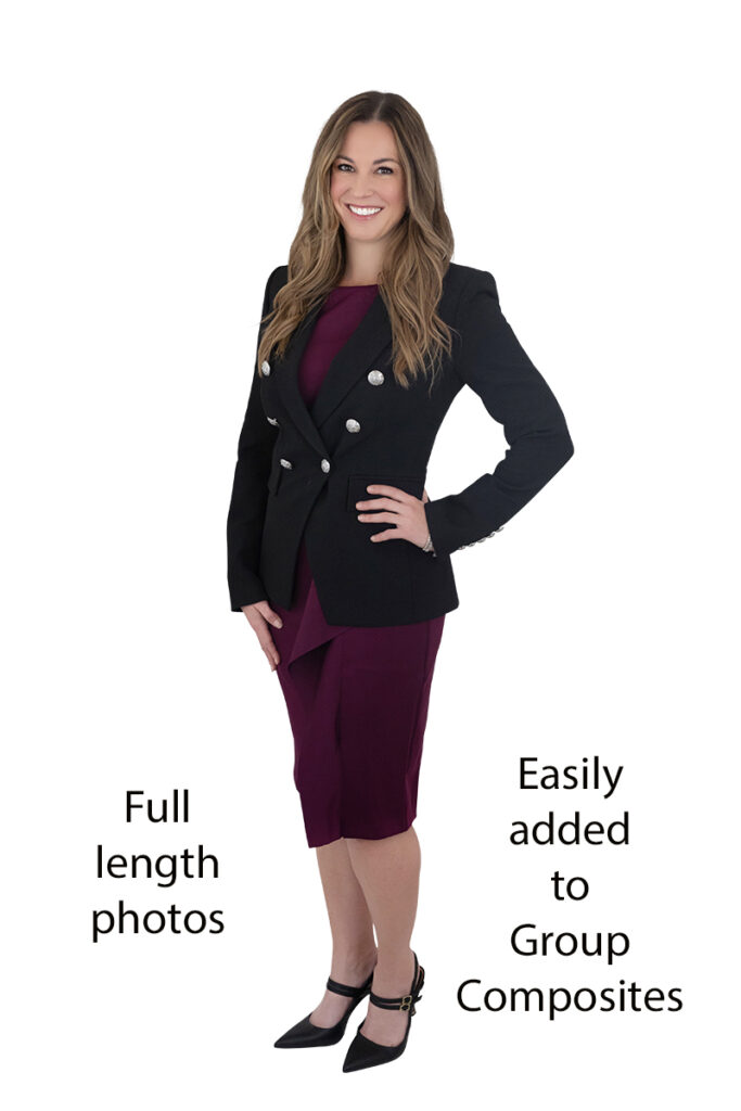 We believe people should love how they look in their headshot and in the group photo. After each session, team members receive a proof gallery and can choose their favorite headshot and full length photo for the composite. The selected photos are then retouched with a natural, professional look. The headshot photo will be delivered and the chosen full length photo will be added in the final group composite.